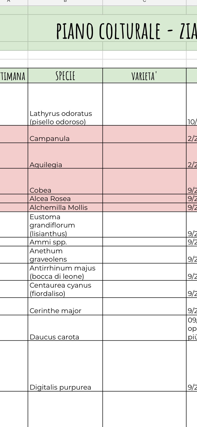 Piano Colturale + Archivio Fiori Zia Nina